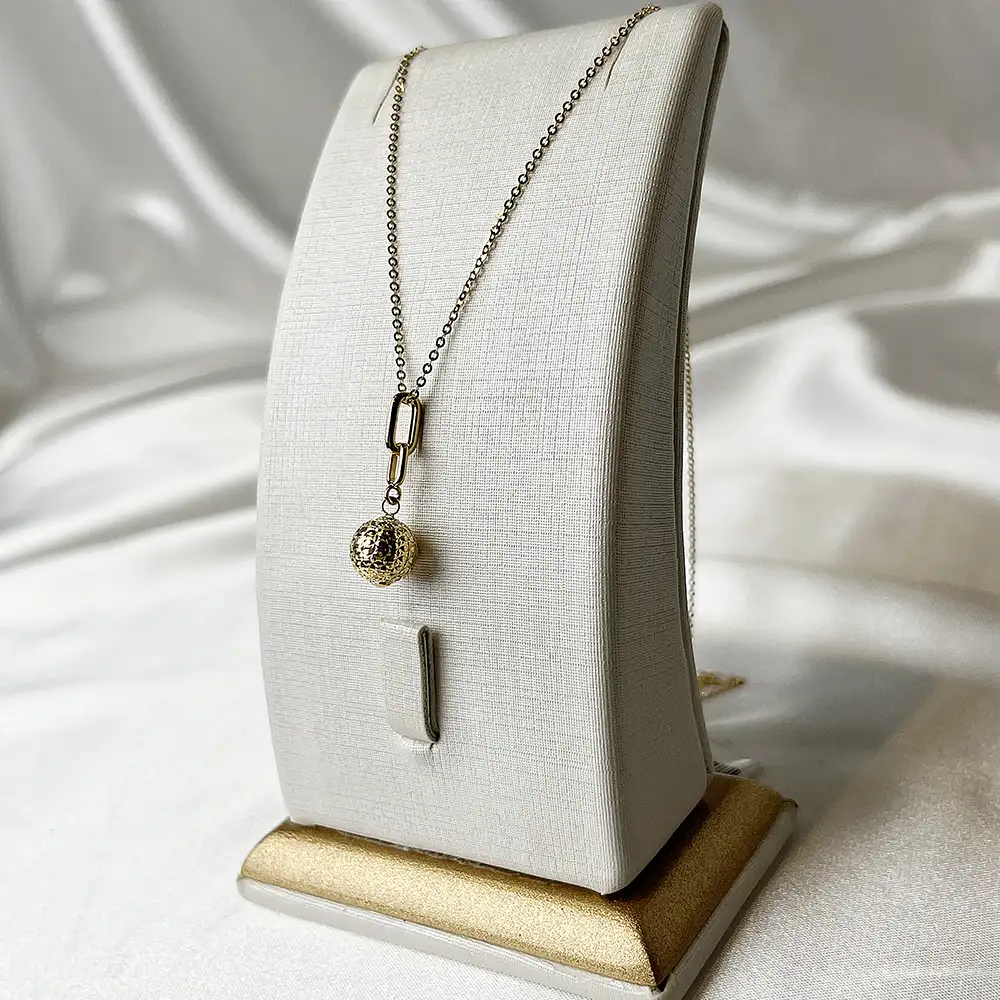 این گردنبند طلا با آویز گوی بافتدار ظریف و طراحی ساده، انتخابی جذاب برای طرفداران طلای مینیمال و سبک است. ترکیب زنجیر ظریف ۴۵ سانتیمتری با آویز کروی کوچک، ظاهری متعادل و شیک ایجاد کرده که بهراحتی با استایلهای روزمره و حتی رسمی ست میشود.