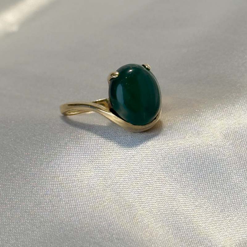 انگشتر عقیق سبز طلای ۱۸ عیار بدون اجرت