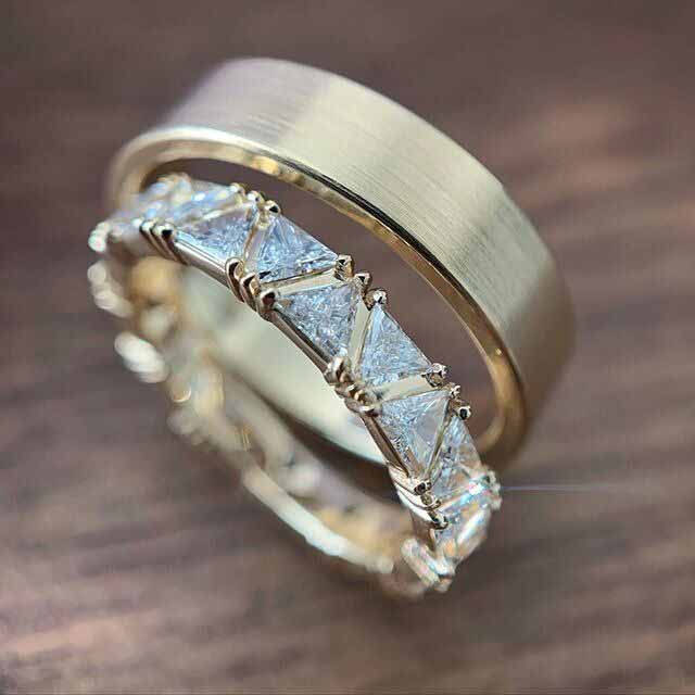 در گالری طلا زمرد مجموعهای از جدیدترین مدلهای حلقه ست عروس و داماد موجود است.