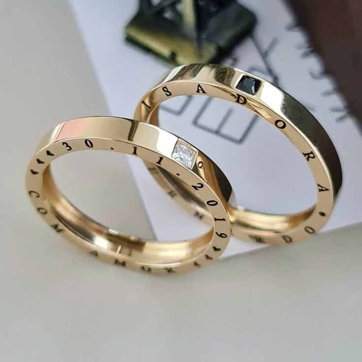 حلقه ست حکاکیشده با نام و تاریخ عقد
